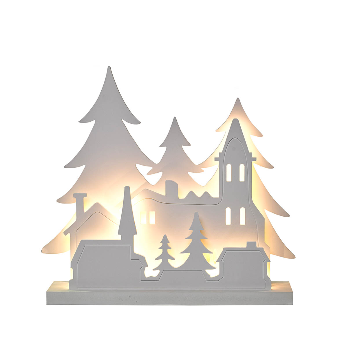 Estrutura em madeira com iluminação. Pilhas AAA não incluídas.