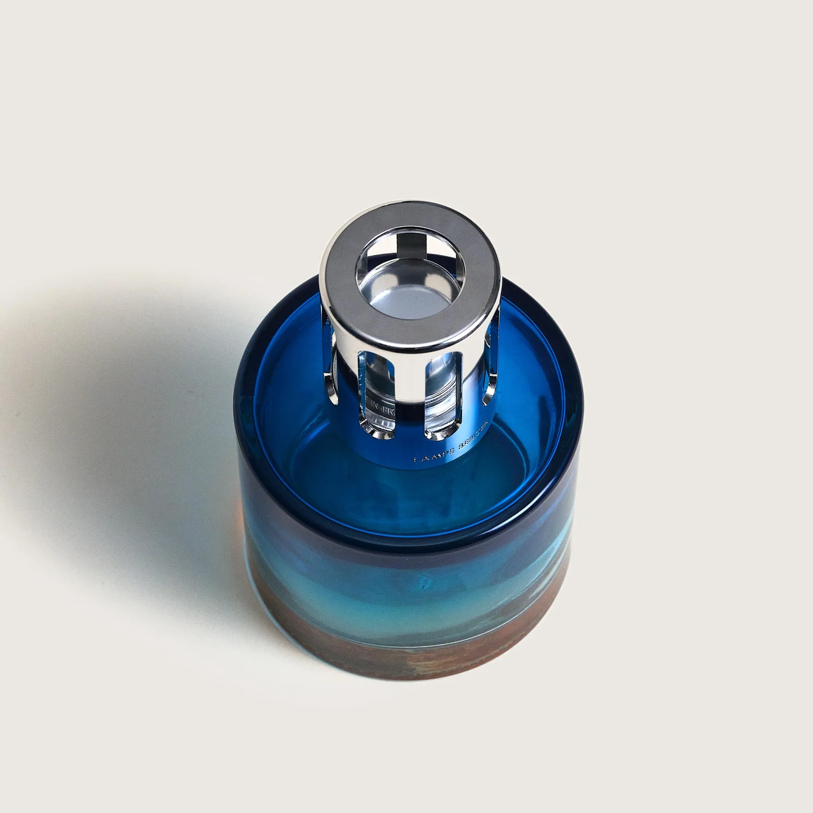 Tampas em liga metálica prata. Um queimador catalítico, e um funil. Frasco de 250ml de Caresse Coton.