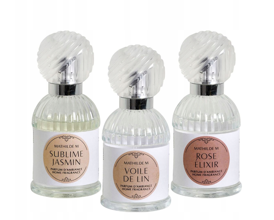 Coffret spray de ambiente em frasco de vidro de 3x30ml.
