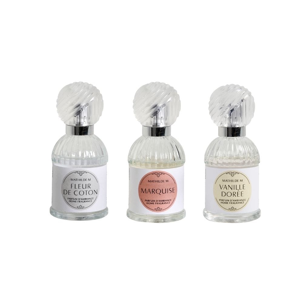 Coffret spray de ambiente em frasco de vidro de 3x30ml.