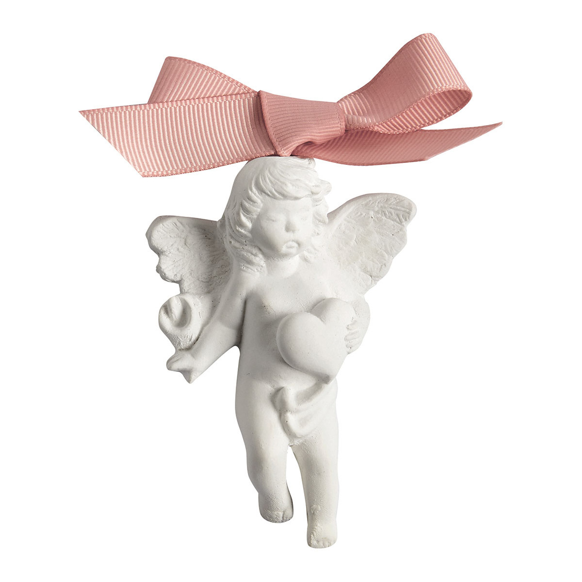 Inteiramente feita à mão, esta decoração perfumada em gesso em forma de pequeno anjo perfuma delicadamente e durante muito tempo pequenos espaços da sua casa, como armários, gavetas ou malas.