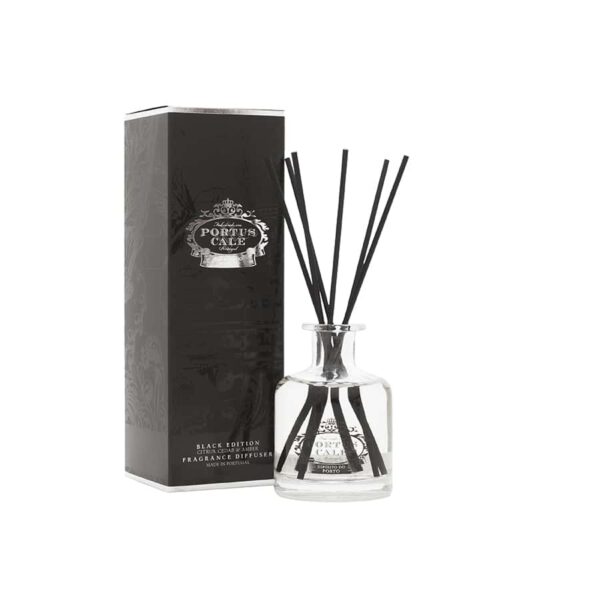 Difusor de fragrância recarregável em vidro. Inclui líquido de 100ml e grupo de varetas vegetais negras.