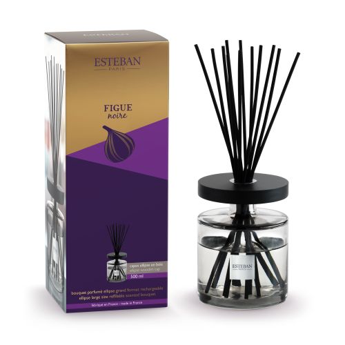 Difusor de fragrância recarregável em vidro. Inclui recarga de 500ml e grupo de varetas vegetais em cor negra.