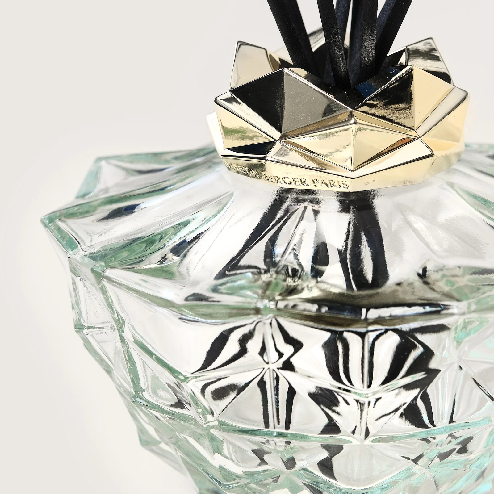Difusor de bouquet recarregável em vidro com anel metálico, com 200ml de perfume. Incluí 8 varetas de polímero técnico.