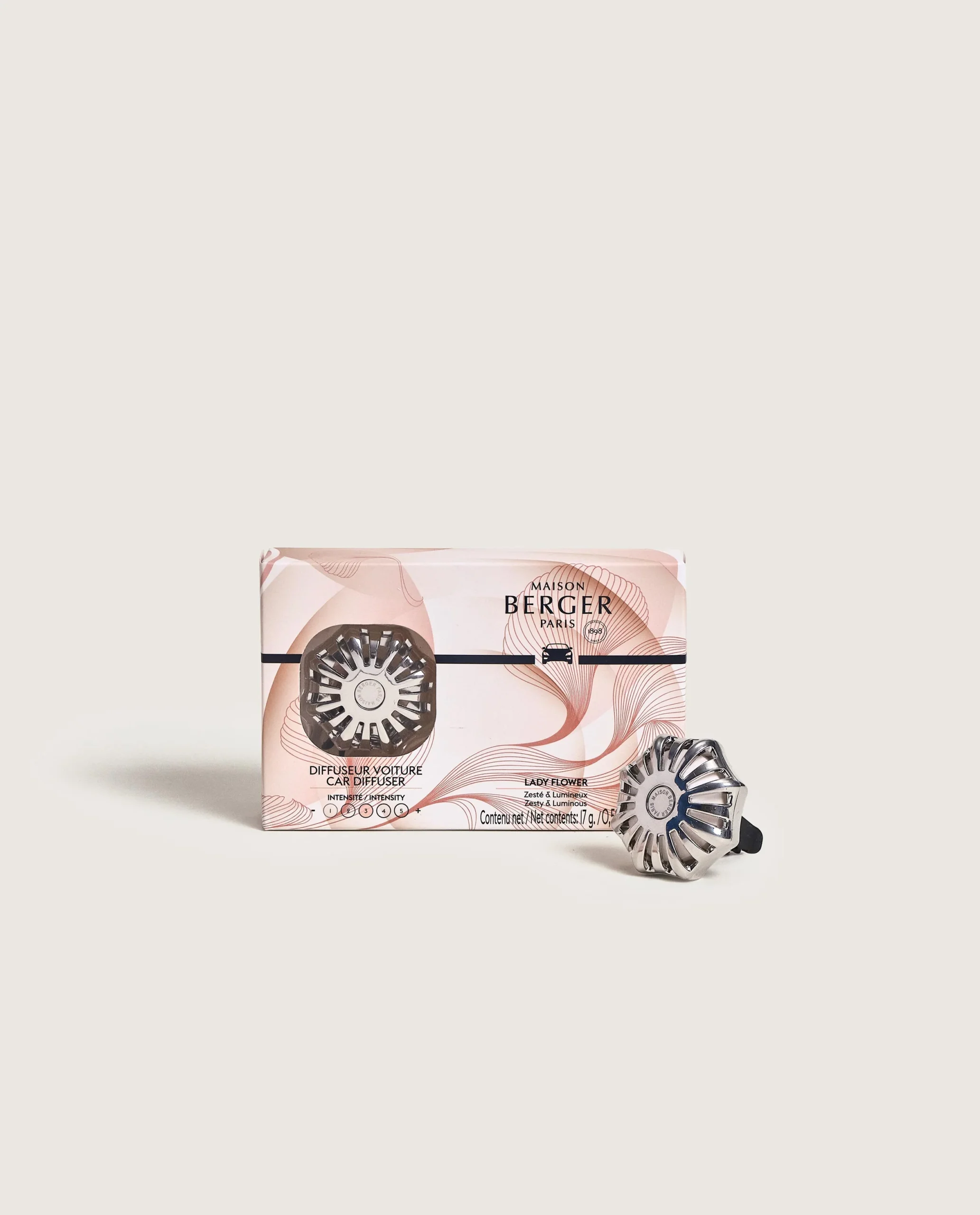 Perfeito para quem procura perfumar o automóvel com um aroma refinado, mantendo ao mesmo tempo um detalhe decorativo moderno e delicado.