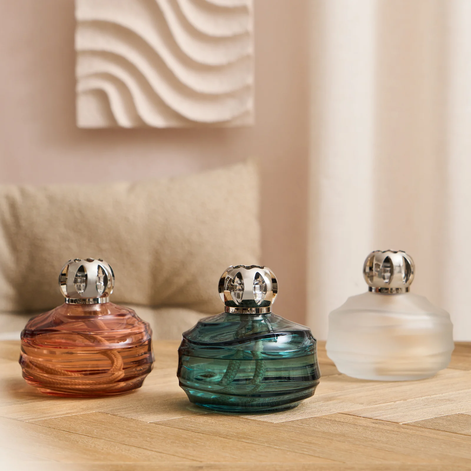 Lamparina em vidro lacado transparente.