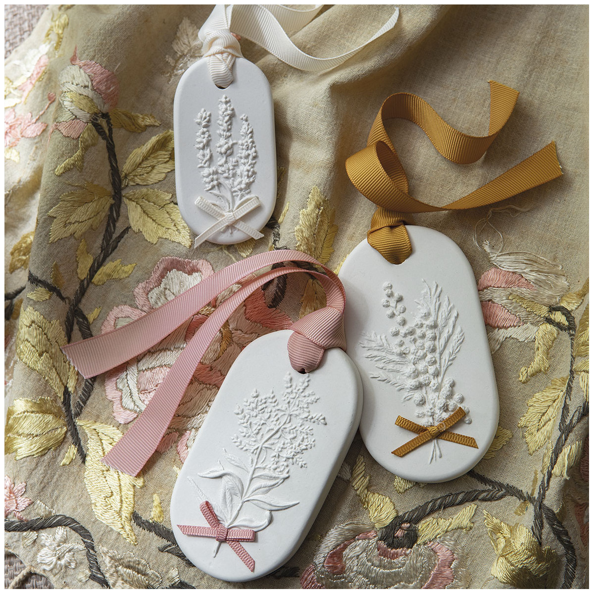 Perfeito para oferecer como presente ou para si, este elegante saquinho contém 3 tesouros perfumados artesanais. Estas pequenas decorações em gesso perfumam delicadamente todos os pequenos espaços da sua casa, como armários, gavetas ou malas, durante muito tempo.