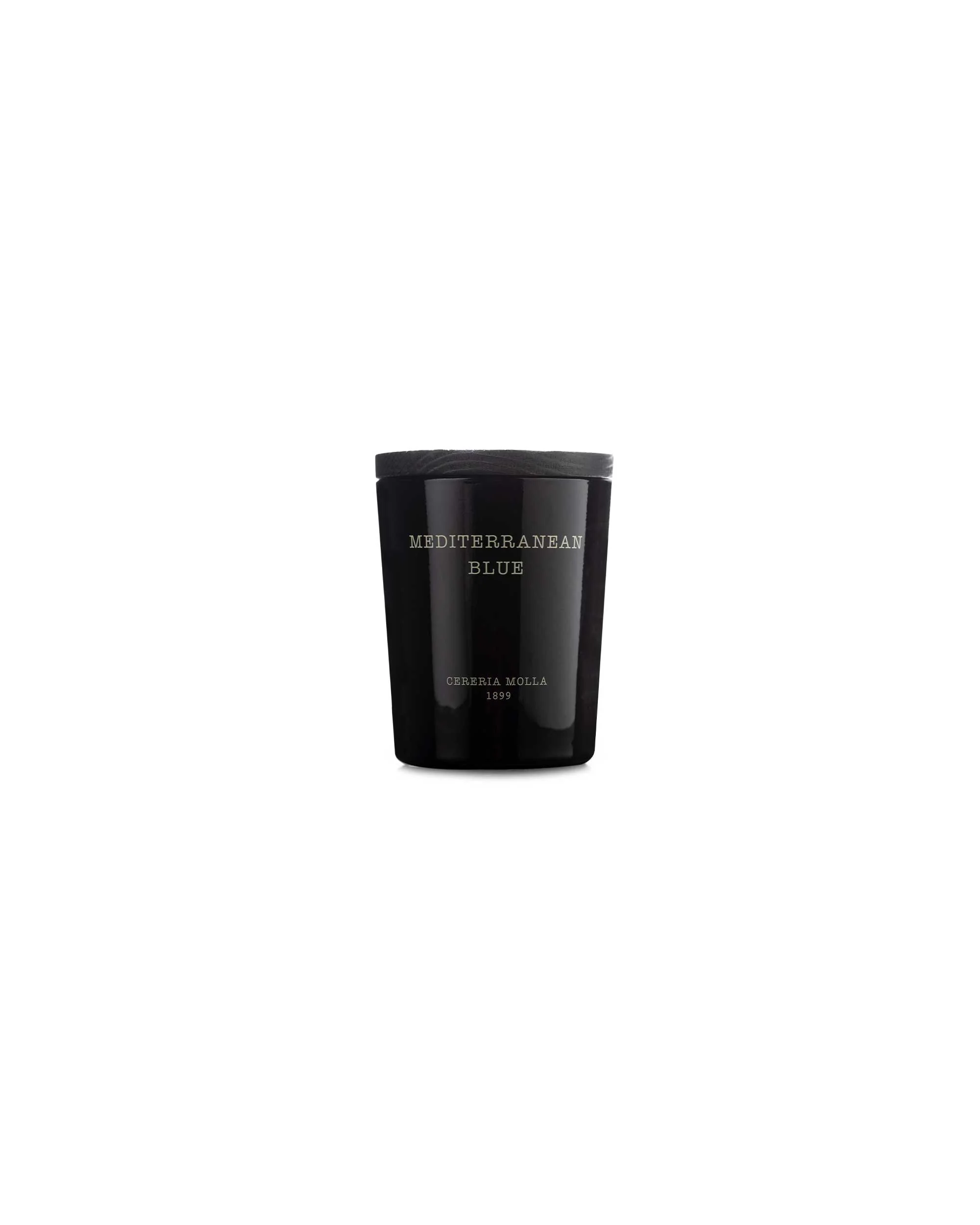 Vela em copo de vidro e tampa de madeira.